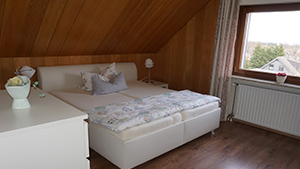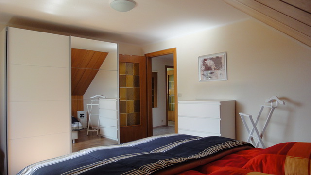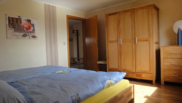 Beide Schlafzimmer sind modern und liebevoll eingerichtet. Im Stil sind die Zimmer leicht unterschiedlich, sodass auch verschiedene Geschmäcker angesprochen werden. Die Austattung ist bei beiden Zimmern ähnlich: ein Doppelbett mit angenehmer Einstiegshöhe, ein großer Kleiderschrank, Nachtschränke und ein Herrendiener.